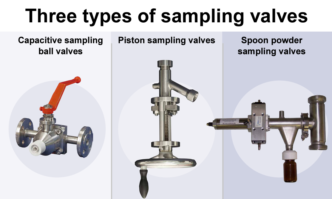 3. Spoon powder sampling valves: The operating principle lies in a spoon linear translation and a 180° turn movement.