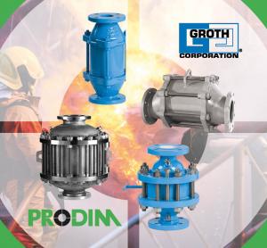 Vlam- en detonatieremmers van Groth Corporation remmen de verspreiding van vlammen in gasleidingsystemen en beschermen lagedruktanks die ontvlambare vloeistoffen bevatten.